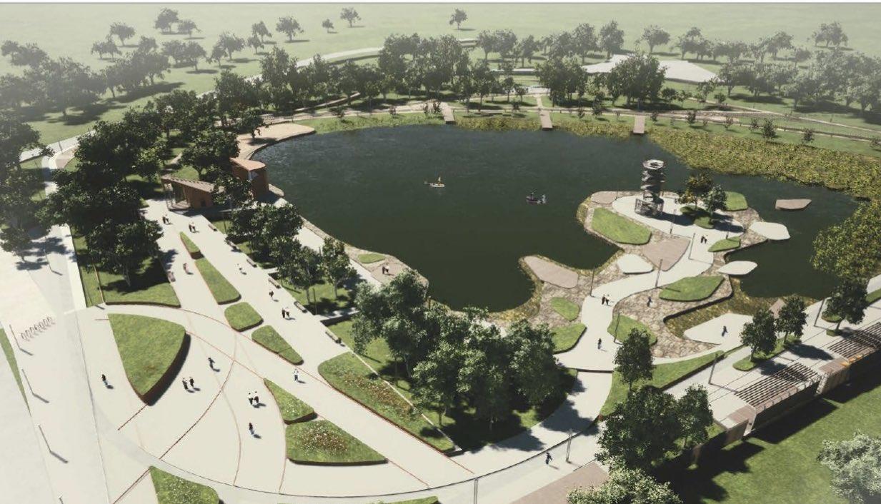 Парк на озере Крымском в Кинеле стал одним из самых популярных мест отдыха горожан. Дизайн благоустройства парка на озере Крымское в Кинеле имеет морскую тематику. Фонтан обустроен в форме корабля, паруса ему заменяют капли воды, струящиеся вниз. Сцена в парке также напоминает палубу. На переходной зоне установлены садовые диваны. По периметру территории парка высажены крупные деревья, сделано освещение, смонтирован понтон. В центре территории парка расположен маяк.
